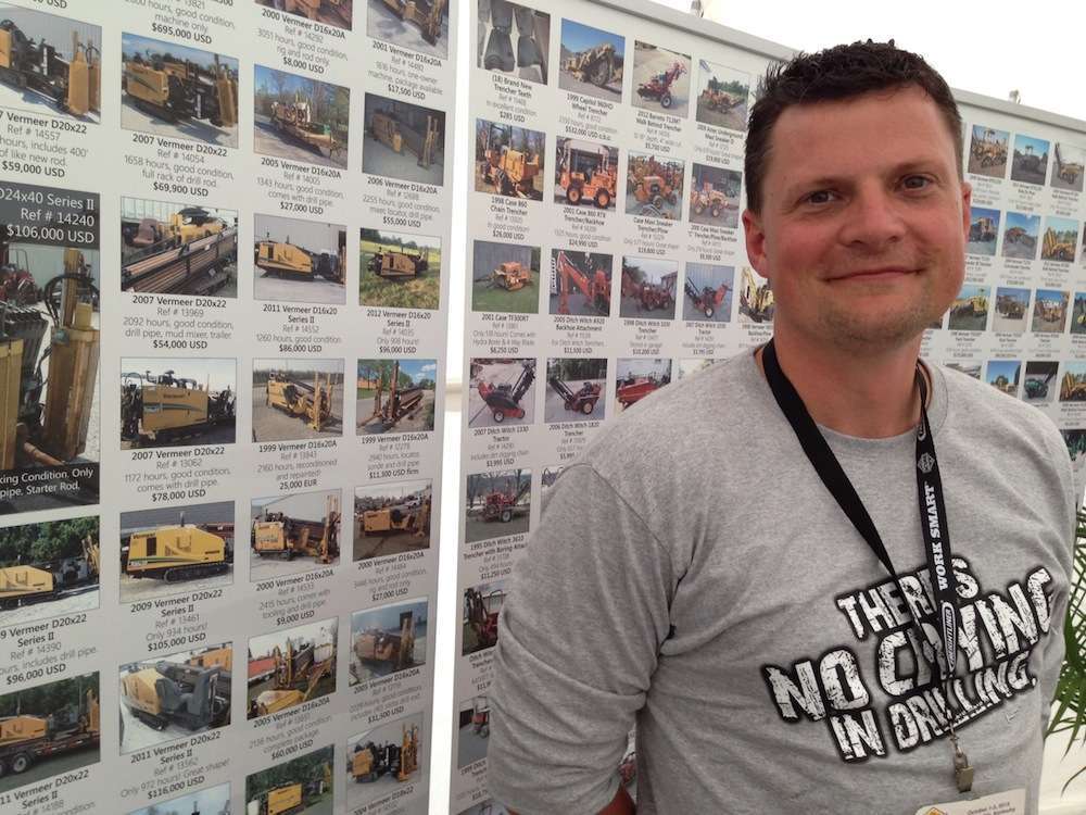 At ICUEE 2013, Bob Martin, HDD Broker's general manager, stands in front of a listing of used drills available from his company.