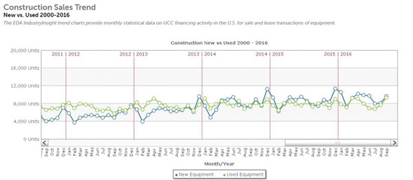 equipment sales climb, used equipment sales drop off.