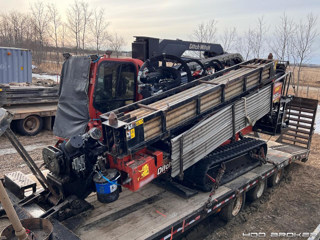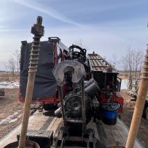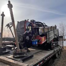 Pictured Trailer is NOT included; Drill Rig with Pipe ONLY.